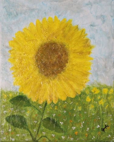 — Un tournesol à son apogée, enraciné dans la terre mais tourné vers le soleil, porte la généreuse lumière de l’été.