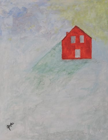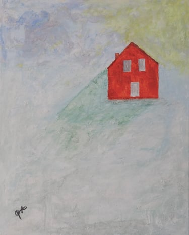 — Une maison rouge veille dans le silence de la neige, porteuse de chaleur au cœur de l’immobilité.