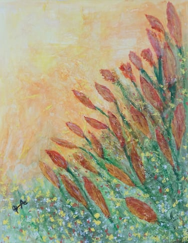 — La première lumière du printemps réveille la terre, tandis que les fleurs naissantes saluent le souffle de la saison.