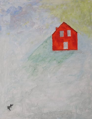— Une maison rouge veille dans le silence de la neige, porteuse de chaleur au cœur de l’immobilité.